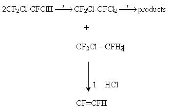 Therefore, the process of 1,1,2-trifluoro-1,2-dichloroethane thermal decomposition may be described by the following diagram.