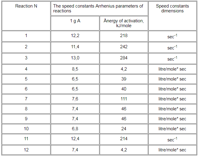 The Arrhenius parameters of the speed constants of the analyzed process's stages are provided hereby in Table 2.