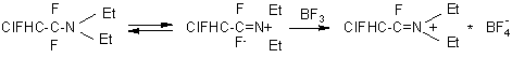 FAR enters a reaction with HCN to form HCFClC(CN) 2NEt 2 [64]. A mixture of methyliodide and silver borofluoride easily alkylate FAR to form quarternary ammonium compounds: [65].