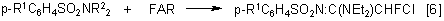 FAR enters the reaction with amides of arensulfo acids in the presence of KF to give enamines: