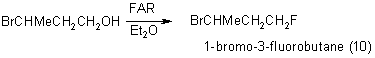 - 2 Br(or I)-propan-1-ol reacts with FAR to form rearranged 1-bromo-2-fluoro derivatives, but 2-chloropropan-1-ol gives the product of direct substitution [26]