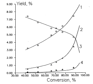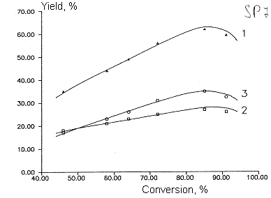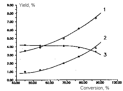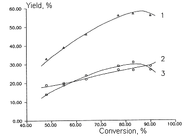 - Maximum yield of basic monomer sum is under conversion of 83-87% as well