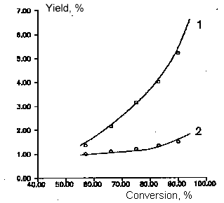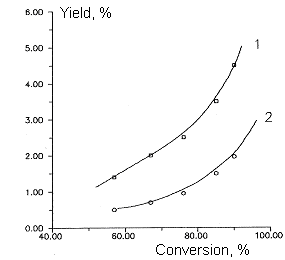 8. Dependence of by- products yields of chlorodifluoromethane and