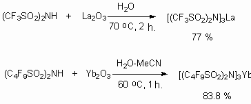 As a rule, these complexes are generated during boiling of oxides of these elements with bis(perfluoroalkanesulfonyl)imide in water for example for lanthanum: