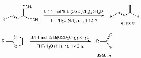 It is shown [123b], that Bi(OSO2CF3)3is an effective catalyst of acetals and ketals turning into aldehydes.