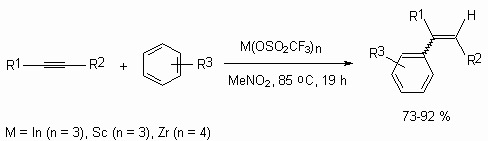 Trifluoromethanesulfonates of scandium, indium and zirconium act as effective catalysts of Friedel-Crafts alkylation of aromatic compounds by derivatives of acetylene [124].