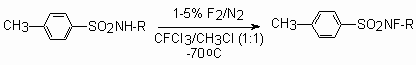 During fluorination of N-alkylsulfonamides in the CFCl3 -CHCl3 system using fluorine [135] , CH3OF[136] or CF3OF[137,138] the corresponding N-fluoroderivatives are obtained.