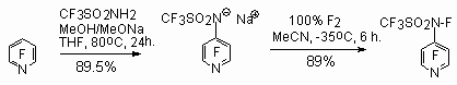 It is better to fluorinate sulfonamide derivatives in the form of corresponding salts. Thus, the fluorination of sodium salt of perfluoro N-(4-pyridyl)methanesulfoamide using elemental fluorine results in formation of N-fluoro-N-(4-pyridyl)methanesulfoamide [91,140].