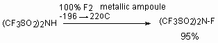 The most active agent among N-fluorosulfonimides is N-fluoro-bis-(trifluoromethanesulfonyl)amide, obtained according the above scheme with total yield 76% . This compound has a boiling point 90-91oC and is thermally stable, it can be kept in glass and is rather effective agent for fluorination with wide field of application [147-149].