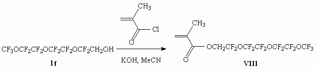 As the alcohol used (I i) had an admixture of isomeric alcohol (11 %) the acrylate formed (VII i) also was a mixture of two isomers with the same composition. In case of (Ie) alcohol (mixture of diastereoisomers with proportion of 1:1.65) the resulting acrylate (VIIe) is also obtained in the form of mixture of two diastereoisomers , which proportion counts to 1:1.1 (according to chromato-mass-spectrometry data and NMR 1H and 19 F spectras).
