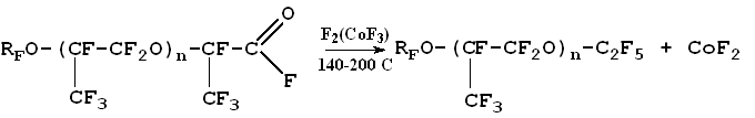The reaction results in neutral perfluoropolyethers. Starting from fluoroanhydrides of perfluoropolyether acids a range of efficient fluorinated surfactants was prepared: cationogenic, anionogenic, non-ionogenic [7]