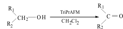 were seen14,15,16such as Oxidation of alcohols: General Method The alcohol (0.001 mol) dissolved in a small amount of the solvent was added to TriPrAFM (0.001 mol) in CH2Cl2 (25 ml) at room temperature. The mixture was stirred and refluxed for the time indicated in the Table 1 at room temperature, diluted with CH2Cl2 and filtered. Evaporation of solvent furnished the product. The molar ratio of substrate to oxidant was 1:1. The solution became homogeneous briefly before the black-brown reduced reagent precipitated. The progress of the reaction was monitored by TLC and UV/Visible spectrophotometery (at 228 nm). Same as above to TriMAFM (0.001 mol) in CH2Cl2 (25 ml) was added the alcohol (0.001 mol) dissolved in a small amount of the solvent at room temperature. The mixture was stirred and refluxed for the time indicated in the Table 1 at room temperature, diluted with CH2Cl2 and filtered. Evaporation of solvent furnished the product. The molar ratio of substrate to oxidant was 1:1. The solution became homogeneous briefly before the black-brown reduced reagent precipitated. The progress of the reaction was monitored by TLC and UV/Visible spectrophotometery (at 228 nm). Acknowledgements The authors would like to thank Dr. Gh. Rezaei Behbahani and Dr. Mahjoub for valuable discussions. References