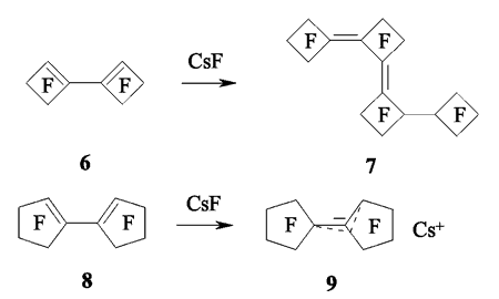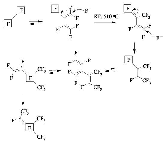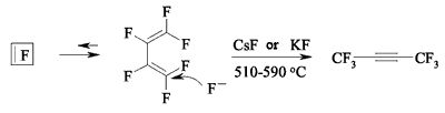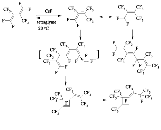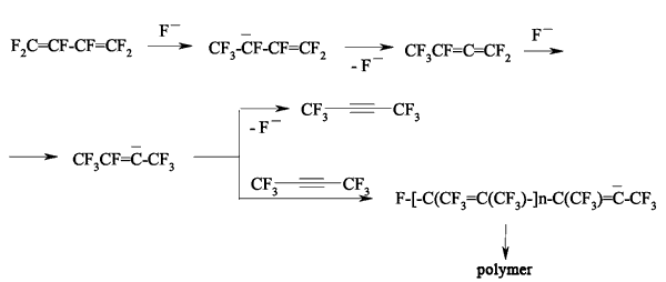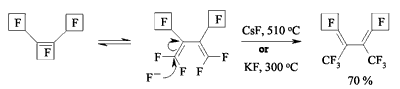 Fluoride-ion catalyzes the dienes forming process starting from perfluorocyclobutene [74].