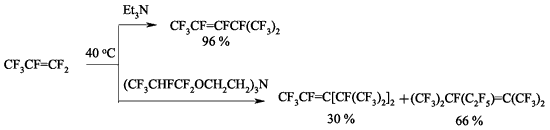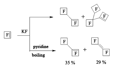 In case of perfluorocyclobutene the yield of dimers increases when using pyridine as a solvent [116,118-120].