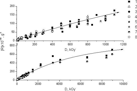 irradiation dose may be deduced from those curves initial regions. Such analysis proved that