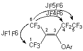 Note : a F in benzene ring; b 98.5 and 97.8 (F1) AB-system JFF = 145.4; c 12.6 (F8), 7.3 (F10), 0.9 (F9) (F benzene ring); d 102.5 (F11,12) 39.1 (F8) 84.2 (F9) Table 2. Yields, Boiling-points and HRMS Data of the Partly-fluorinated Products