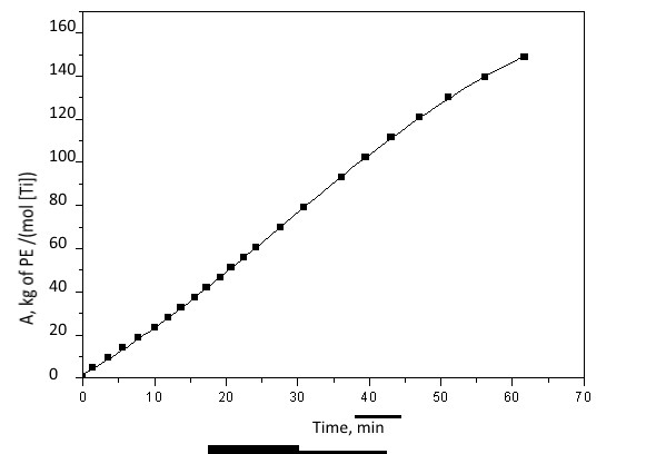 All catalytic systems based on complexes 5, 10 and 11, are characterized by stable polymerization kinetics. For example, Figure 3 shows the polymerization kinetics on a system with complex 10.
