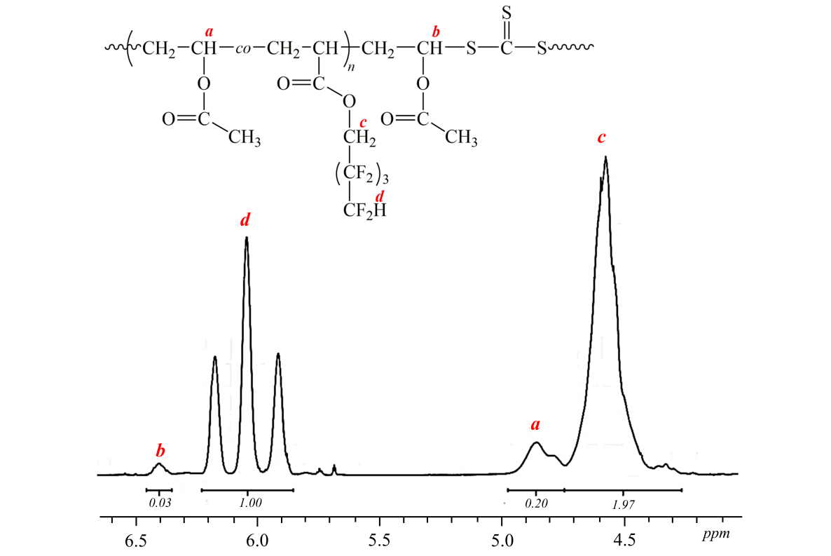 Copolymerization of octafluoropentylacrylate and vinyl acetate was being held in the presence of dibenzyltrithiocarbonate