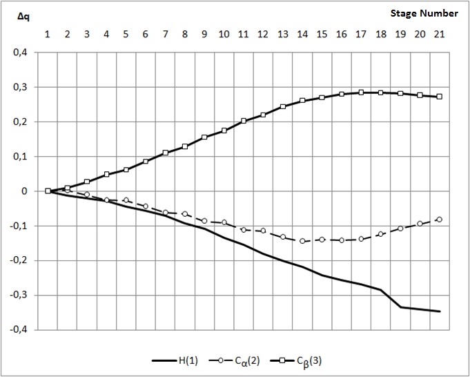 (Е0) increases along the entire path of motion of the initiating particle H+ along the coordinates of the reaction RH1С2 and RH1С3.