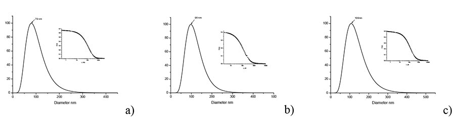 As follows from Fig. 3, the average size (hydrodynamic diameter) of NaYF4/Yb/Tm nanocrystals in organic cladding is 79 nm, 98 nm and 108 nm when reaction process is stopped after 12, 16 and 28 min, respectively.