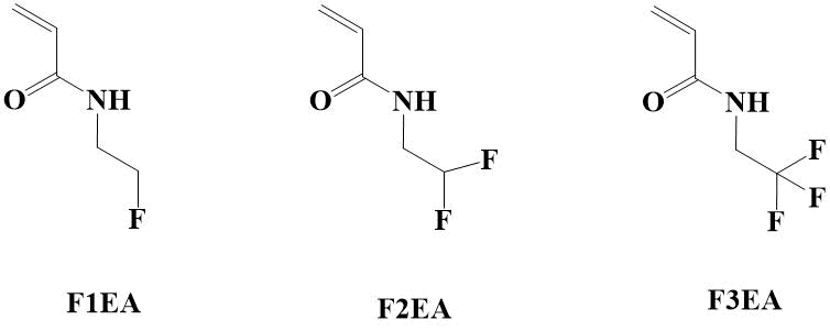It should be noted that there is currently a very limited amount of commercially available monomers among fluorine-containing acrylamides in order to conduct targeted studies in this area. Consequently, N-(2-fluoroethyl) acrylamide (F1EA), N-(2,2-difluoroethyl) acrylamide (F2EA) and N-(2,2,2-trifluoroethyl) acrylamide (F3EA) (Figure 1) [5] are most commonly used in this direction.