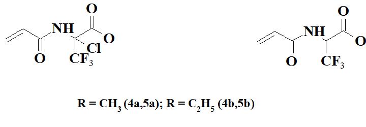 The aim of the present invention is to obtain novel CF3-containing monomers – methyl 2-acrylamino-2-chloro-, ethyl 2-acrylamino-2-chloro-, methyl 2-acrylamino- and ethyl 2-acryloxyamino-3,3,3-trifluoropropionates 4a,b and 5a,b, respectively (Figure 2).