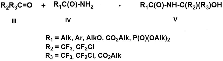 It has previously been found that polyfluorocarbonyl compounds (III), unlike their non-fluorinated analogs, readily react with amides (IV) of various aliphatic and aromatic carboxylic acids, forming stable N-amidooxy compounds (V) [11-15] (Scheme 2).